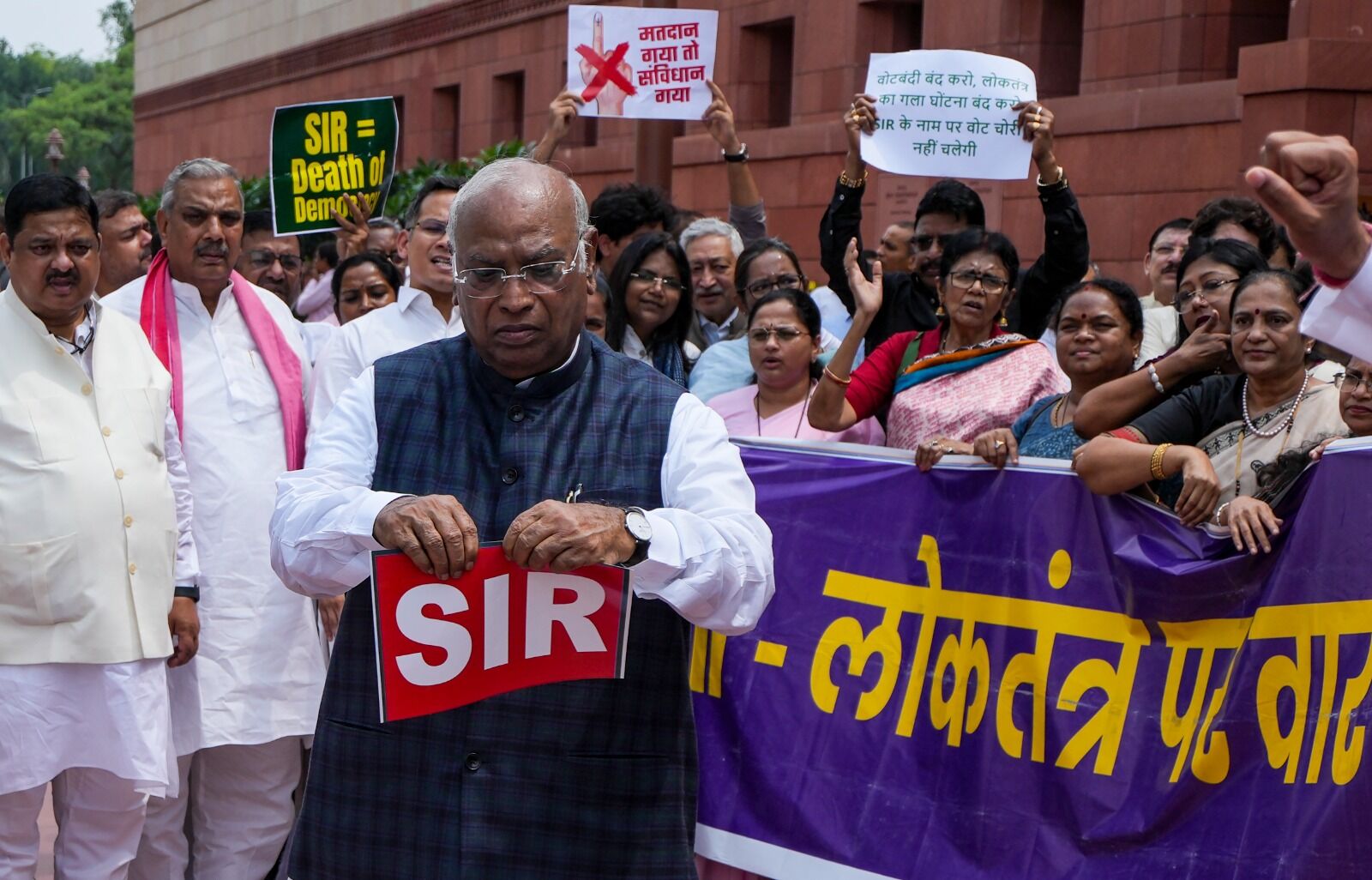 PHOTOS | ಎಸ್‌ಐಆರ್ ಪೋಸ್ಟರ್‌ಗಳನ್ನು ಹರಿದು ಕಸದ ಬುಟ್ಟಿಗೆ ಎಸೆದ ವಿಪಕ್ಷಗಳ ಸಂಸದರು