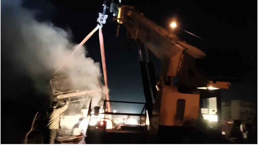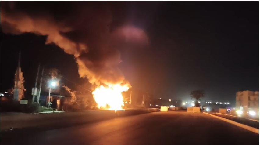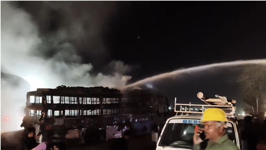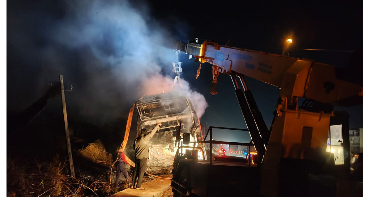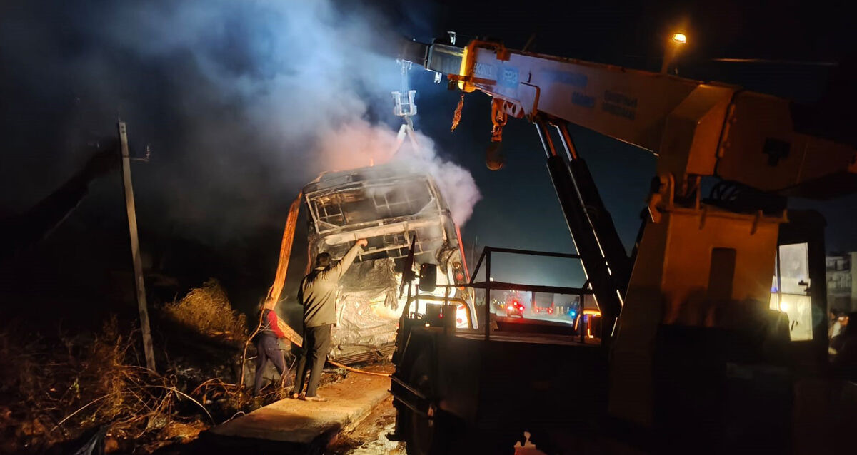 ನೆಲಮಂಗಲದಲ್ಲಿ ಖಾಸಗಿ ಬಸ್ ಬೆಂಕಿಗಾಹುತಿ: 40 ಪ್ರಯಾಣಿಕರು ಪಾರು
