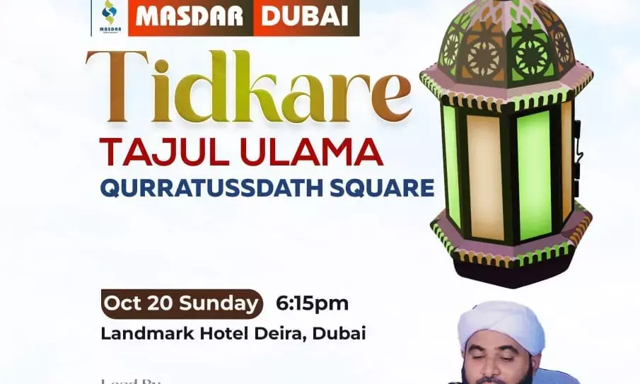 ದುಬೈ: ಅ.20ರಂದು ಮಸ್ದರ್ ವತಿಯಿಂದ ತಾಜುಲ್ ಉಲಮಾ ಸಂಸ್ಮರಣಾ ಸಂಗಮ