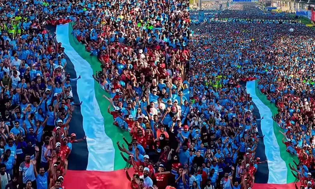 'ದುಬೈ ರನ್'ನಲ್ಲಿ ಮಿಂಚಿದ 'ಬ್ಯಾರಿಗಳು' : ಅತೀ ಉದ್ದನೆಯ ಯುಎಇ ಧ್ವಜದ ವೀಡಿಯೋ ಹಂಚಿಕೊಂಡ ದುಬೈ ರಾಜಕುಮಾರ ಶೇಖ್ ಹಮ್ದಾನ್