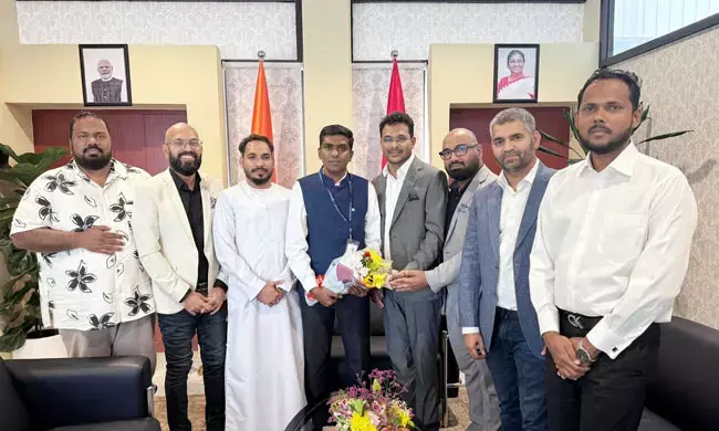 ದುಬೈ: ಇತ್ತೀಚೆಗೆ ನಡೆದ ಬ್ಯಾರಿ ಮೇಳ ಕಾರ್ಯಕ್ರಮದಲ್ಲಿ ಅತಿಥಿಯಾಗಿ ಭಾಗವಹಿಸಿದ್ದ ಕಾನ್ಸುಲ್ ಜನರಲ್ ಆಫ್ ಇಂಡಿಯಾ ಸತೀಶ್ ಶಿವನ್ ಅವರ ವಿಶೇಷ ಆಹ್ವಾನದ ಮೇರೆಗೆ ದುಬೈನ ಕಾನ್ಸುಲೇಟ್ ಕಚೇರಿಗೆ ಭೇಟಿ ನೀಡಿದ ಬ್ಯಾರೀಸ್ ಚೇಂಬರ್ ಆಫ್ ಕಾಮರ್ಸ್ ಆಂಡ್ ಇಂಡಸ್ಟ್ರೀಸ್ ಯುಎಇ ಕಾರ್ಯಕಾರಿ ಸಮಿತಿ ಸದಸ್ಯರು ಸಮುದಾಯದ ಹಾಗೂ ಅನಿವಾಸಿಗಳ ಹಲವಾರು ವಿಷಯಗಳ ಕುರಿತು ಮುಕ್ತವಾಗಿ ಚರ್ಚಿಸಿದರು.