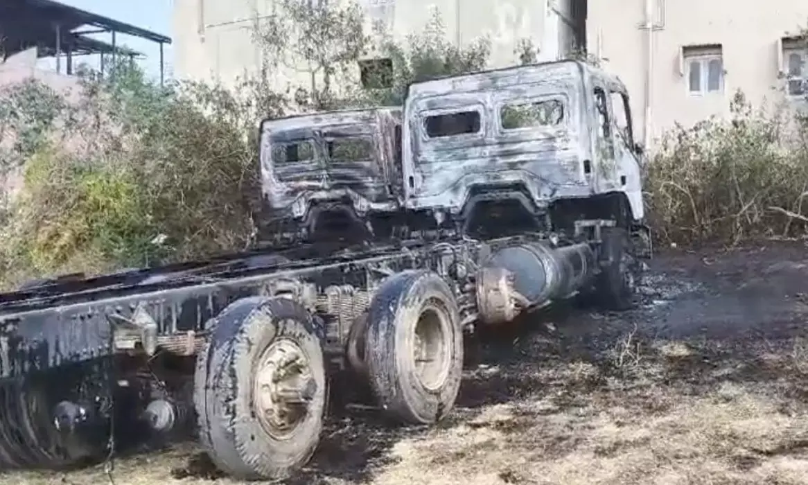 ಬೇಲೂರು | ರಸ್ತೆ ಬದಿ ನಿಲ್ಲಿಸಿದ್ದ ಎರಡು ಲಾರಿಗಳಿಗೆ ಆಕಸ್ಮಿಕ ಬೆಂಕಿ