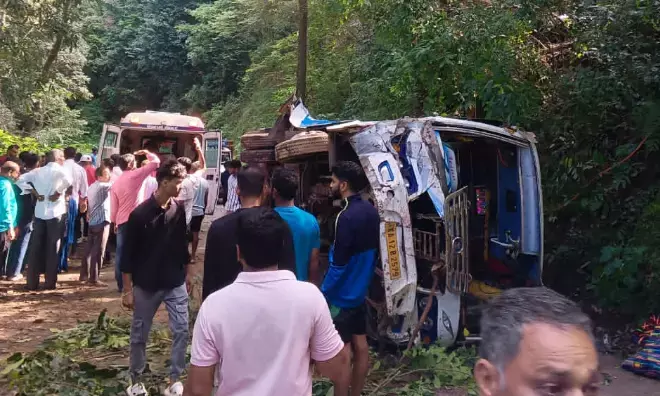 ಹಾಸನ | ಮದುವೆಗೆ ತೆರಳುತ್ತಿದ್ದ ಮಿನಿ ಬಸ್ ಪಲ್ಟಿ : 20ಕ್ಕೂ ಹೆಚ್ಚು ಮಂದಿಗೆ ಗಾಯ
