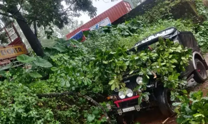 ಸಕಲೇಶಪುರ ತಾಲೂಕಿನಲ್ಲಿ ಭಾರೀ ಮಳೆಗೆ ಮರ ವಿದ್ಯುತ್ ಕಂಬ ರಸ್ತೆಗೆ ಉರುಳಿದ್ದು, ಪಟ್ಟಣದ ಹಳೆ ಸಂತೆ ರಸ್ತೆಯಲ್ಲಿ ಗಾಳಿಗೆ ಜೀಪಿನ ಮೇಲೆ ಮರ ಬಿದ್ದು ಜೀಪ್ ಸಂಪೂರ್ಣ ಜಖಂಗೊಂಡಿದೆ.