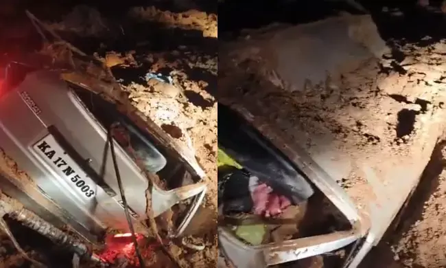ಸಕಲೇಶಪುರ: ಚಲಿಸುತ್ತಿದ್ದ ಓಮ್ನಿ ಮೇಲೆ ಮಣ್ಣು ಕುಸಿತ; ಅಪಾಯದಿಂದ ಪಾರಾದ ಪ್ರಯಾಣಿಕರು