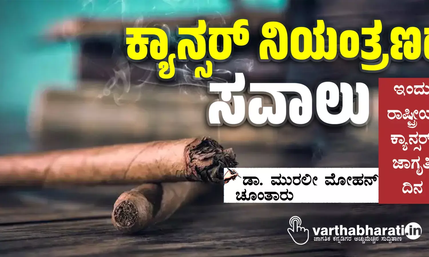 ಭಾರತ ದೇಶವೊಂದರಲ್ಲೇ ವರ್ಷಕ್ಕೆ 10 ಲಕ್ಷ ಜನರು ಕ್ಯಾನ್ಸರ್ಗೆ ತುತ್ತಾಗುತ್ತಾರೆ ಮತ್ತು ವಿಶ್ವದ ಕ್ಯಾನ್ಸರ್ ರ್ಯಾಂಕ್ ಪಟ್ಟಿಯಲ್ಲಿ ಭಾರತಕ್ಕೆ 5ನೇ ಸ್ಥಾನ ಲಭಿಸಿದೆ. ಈ ಪೈಕಿ ಶೇ. 90ರಷ್ಟು ಕ್ಯಾನ್ಸರ್ ತಂಬಾಕಿನ ಸೇವನೆಯಿಂದ ಬರುತ್ತದೆ. ತಂಬಾಕಿನ ವಿವಿಧ ಉತ್ಪನ್ನಗಳಿಂದ ಬಾಯಿ, ಗಂಟಲು, ಶ್ವಾಸಕೋಶ ಮುಂತಾದ ಅಂಗಗಳು ಕ್ಯಾನ್ಸರ್ಗೆ ತುತ್ತಾಗುತ್ತವೆ. ಇದರ ಜೊತೆಗೆ ಧೂಮಪಾನ, ಮದ್ಯಪಾನ ಸೇರಿಕೊಂಡು ಶ್ವಾಸಕೋಶ, ಕರುಳು, ಅನ್ನನಾಳ, ಯಕೃತ್, ಮೂತ್ರಪಿಂಡ ಇತ್ಯಾದಿ ಅಂಗಗಳು ಕ್ಯಾನ್ಸರ್ಗೆ ತುತ್ತಾಗುತ್ತವೆ. ಸಮಾಧಾನಕರವಾದ ಅಂಶವೆಂದರೆ ದುಶ್ಚಟಗಳನ್ನು ನಿಯಂತ್ರಿಸಿ ಕ್ಯಾನ್ಸರನ್ನು ಪರಿಣಾಮಕಾರಿಯಾಗಿ ತಡೆಗಟ್ಟಬಹುದು ಮತ್ತು ಪ್ರಾರಂಭಿಕ ಹಂತದಲ್ಲಿಯೇ ಗುರುತಿಸಿದಲ್ಲಿ ಸಂಪೂರ್ಣ ಗುಣಪಡಿಸಬಹುದು.
