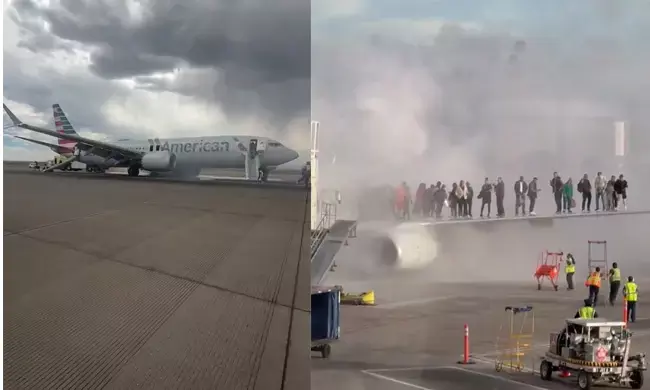 ಟೇಕ್ ಆಫ್ಗೆ ಕೆಲವೇ ಕ್ಷಣ ಮುನ್ನ ಅಮೆರಿಕನ್ ಏರ್ಲೈನ್ಸ್ ವಿಮಾನದಲ್ಲಿ ಬೆಂಕಿ : ಪ್ರಯಾಣಿಕರ ಸ್ಥಳಾಂತರ