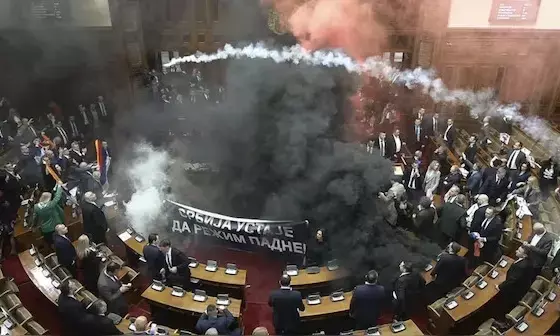 4 ತಿಂಗಳ ಹಿಂದೆ ಸರ್ಬಿಯಾದಲ್ಲಿ ರೈಲ್ವೇ ನಿಲ್ದಾಣದ ಮೇಲ್ಛಾವಣಿ ಕುಸಿದು 15 ಮಂದಿ ಮೃತಪಟ್ಟಿದ್ದು ಈ ಘಟನೆಯಲ್ಲಿ ಅಧಿಕಾರಿಗಳ ಕರ್ತವ್ಯಲೋಪವನ್ನು ಖಂಡಿಸಿ ದೇಶದಾದ್ಯಂತ ಪ್ರತಿಭಟನೆ ನಡೆಯುತ್ತಿದೆ. ಪ್ರತಿಭಟನಾ ನಿರತ ವಿದ್ಯಾರ್ಥಿಗಳನ್ನು ಸಮಾಧಾನ ಪಡಿಸುವ ಪ್ರಯತ್ನವಾಗಿ ಸರಕಾರ ವಿವಿಗಳಿಗೆ ಅನುದಾನ ಹೆಚ್ಚಿಸುವ ಮಸೂದೆಯನ್ನು ಸಂಸತ್ನಲ್ಲಿ ಮಂಡಿಸಿದ್ದು ಚರ್ಚೆಯ ಸಂದರ್ಭ ಘರ್ಷಣೆ ಭುಗಿಲೆದ್ದಿದೆ. ವಿರೋಧ ಪಕ್ಷದ ಸಂಸದರು ಅಶ್ರುವಾಯು ಮತ್ತು ಹೊಗೆಬಾಂಬ್ ಸಿಡಿಸಿದಾಗ ಇಬ್ಬರು ಸಂಸದರು ಗಾಯಗೊಂಡಿದ್ದಾರೆ ಎಂದು ಸ್ಪೀಕರ್ ಹೇಳಿದ್ದಾರೆ.