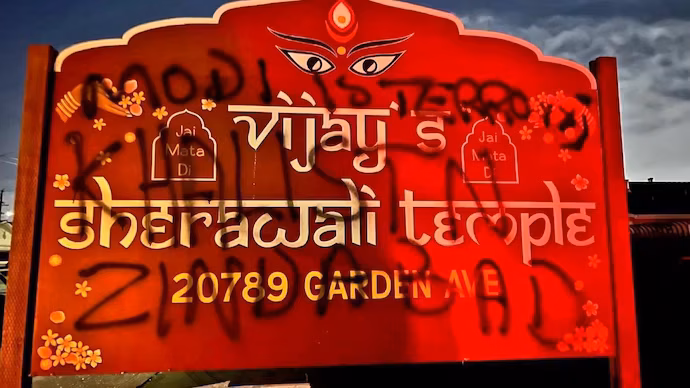 ನ್ಯೂಯಾರ್ಕ್: ಅಮೆರಿಕದ ಕ್ಯಾಲಿಫೋರ್ನಿಯಾದ ನೆವಾರ್ಕ್ ನಗರದಲ್ಲಿ `ಶೇರಾವಾಲಿ ಮಾ' ದೇವಸ್ಥಾನವನ್ನು ಭಾರತ-ವಿರೋಧಿ, ಖಾಲಿಸ್ತಾನ್ ಪರ ಬರಹದ ಮೂಲಕ ವಿರೂಪಗೊಳಿಸಲಾಗಿದೆ ಎಂದು ಹಿಂದು-ಅಮೆರಿಕನ್ ಫೌಂಡೇಷನ್(ಎಚ್ಎಎಫ್) ಹೇಳಿದೆ.