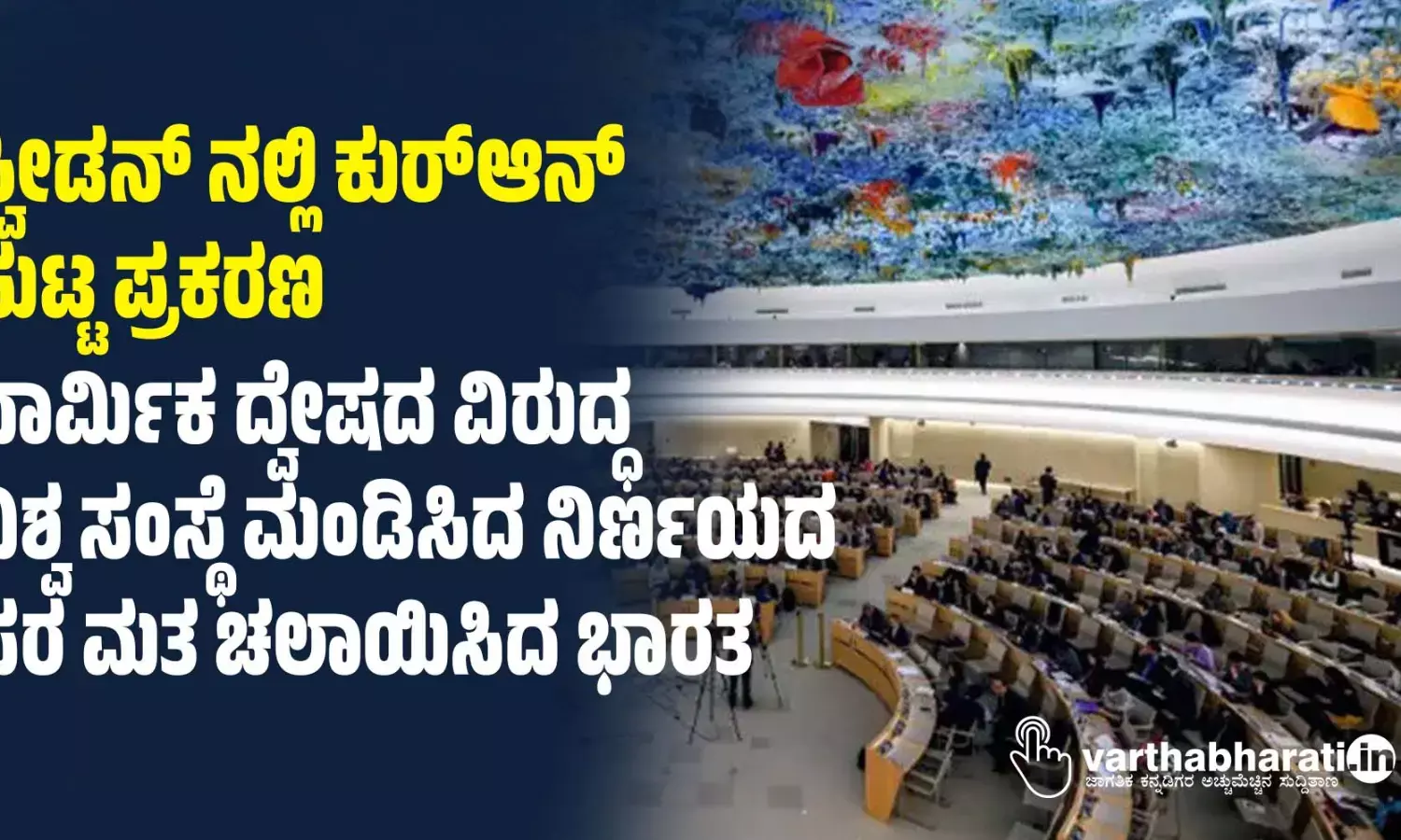ಹೊಸದಿಲ್ಲಿ: ಸ್ವೀಡನ್ ದೇಶದಲ್ಲಿ ಕುರಾನ್ ಸುಟ್ಟು ಹಾಕಿದ ಘಟನೆಯ ನಂತರ ಧಾರ್ಮಿಕ ದ್ವೇಷವನ್ನು ಹತ್ತಿಕ್ಕಲು ಪಾಕಿಸ್ತಾನ ಮಂಡಿಸಿದ ಕರಡು ನಿರ್ಣಯವನ್ನು ವಿಶ್ವ ಸಂಸ್ಥೆಯ ಮಾನವ ಹಕ್ಕುಗಳ ಮಂಡಳಿ ಕೈಗೆತ್ತಿಕೊಂಡಿದೆ. ಈ ನಿರ್ಣಯದ ಪರ ಭಾರತ ಕೂಡ ಮತ ಚಲಾಯಿಸಿದೆ.