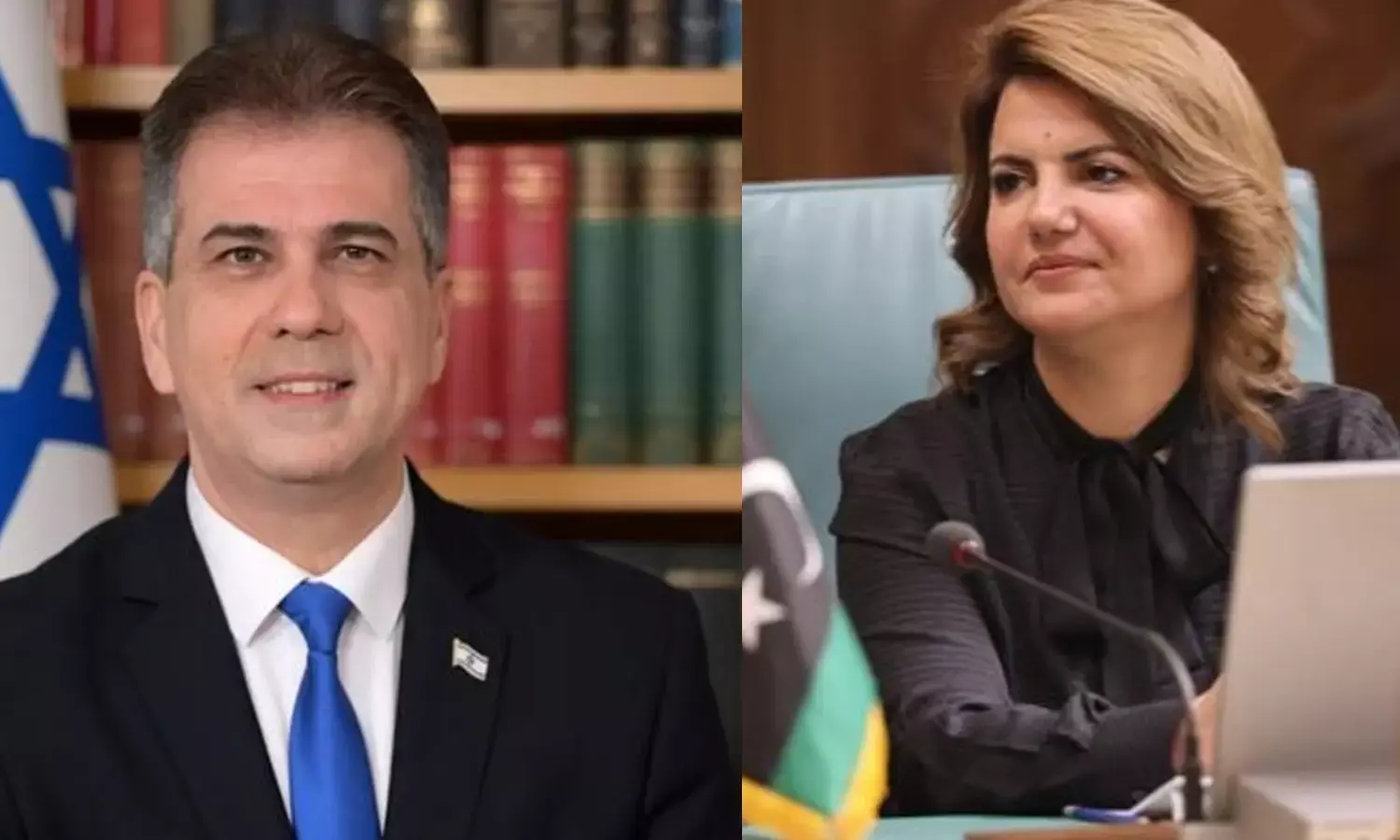 ಇಸ್ರೇಲ್ನ ವಿದೇಶಾಂಗ ಸಚಿವ ಎಲೀ ಕೊಹೆನ್ ಮತ್ತು ಲಿಬಿಯಾದ ವಿದೇಶ ವ್ಯವಹಾರ ಸಚಿವೆ ನಜ್ಲಾ Photo: @twitter