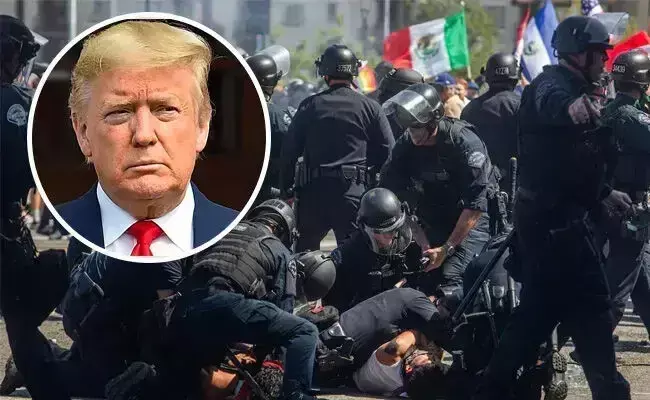 ಲಾಸ್ಏಂಜಲೀಸ್: ಅಕ್ರಮ ವಲಸಿಗರ ವಿರುದ್ಧ ಅಮೆರಿಕ ಅಧ್ಯಕ್ಷ ಡೊನಾಲ್ಡ್ ಟ್ರಂಪ್ ಕೈಗೊಂಡಿರುವ ದಮನಕಾರಿ ಕ್ರಮಗಳ ವಿರುದ್ಧ ಲಾಸ್ಏಂಜಲೀಸ್ನಲ್ಲಿ ಭುಗಿಲೆದ್ದಿರುವ ಭಾರೀ ಪ್ರತಿಭಟನೆಯನ್ನು ನಿಯಂತ್ರಿಸಲು ಮಂಗಳವಾರ ರಾತ್ರಿ ನಗರದ ಪ್ರಮುಖ ಸ್ಥಳಗಳಲ್ಲಿ ಕರ್ಫ್ಯೂ ಹೇರಲಾಗಿದೆ. ಪ್ರತಿಭಟನಾ ನಿರತ ನೂರಾರು ಮಂದಿಯನ್ನು ಚದುರಿಸಲು ಪ್ರೊಜೆಕ್ಟೈಲ್ಗಳನ್ನು ಬಳಸಲಾಗುತ್ತಿದೆ ಹಾಗೂ ಎಲ್ಲೆಡೆ ಅಶ್ವಾರೋಹಿ ಪೊಲೀಸರನ್ನು ನಿಯೋಜಿಸಲಾಗಿದೆ.