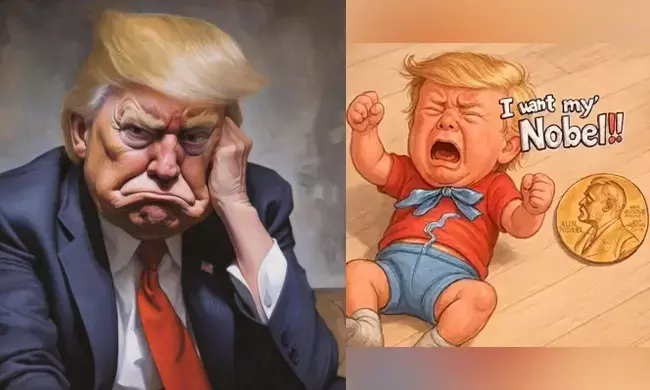 ಸಾಮಾಜಿಕ ಜಾಲ ತಾಣ ಎಕ್ಸ್ ನಲ್ಲಿನ ಬಳಕೆದಾರರೊಬ್ಬರು, ಡೊನಾಲ್ಡ್ ಟ್ರಂಪ್ ಅವರು ಕಾಗದದ ಮೇಲಿನ ನೊಬೆಲ್ ಶಾಂತಿ ಪ್ರಶಸ್ತಿಗೆ ಅರ್ಹರು ಎಂದು ಟ್ರೋಲ್ ಮಾಡಿದ್ದಾರೆ. ಅಲ್ಲದೇ 'ಪ್ರಶಸ್ತಿ ಪತ್ರ'ವನ್ನೂ ಅದಕ್ಕೆ ಲಗತ್ತಿಸಿದ್ದಾರೆ.