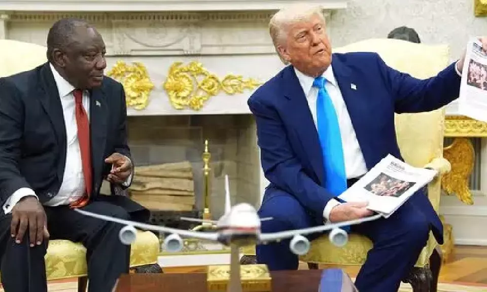 ಓವಲ್ ಕಚೇರಿಯಲ್ಲಿ ದಕ್ಷಿಣ ಆಫ್ರಿಕಾದ ಅಧ್ಯಕ್ಷ ಸಿರಿಲ್ ರಾಮಫೋಸಾ ಅವರನ್ನು ಅಮೆರಿಕದ ಅಧ್ಯಕ್ಷ ಡೊನಾಲ್ಡ್ ಟ್ರಂಪ್ ಭೇಟಿ ಮಾಡಿದರು. ಮಾತುಕತೆಯ ವೇಳೆ ಜನರು ತಮ್ಮ ಸುರಕ್ಷತೆಗಾಗಿ ದಕ್ಷಿಣ ಆಫ್ರಿಕಾದಿಂದ ಪಲಾಯನ ಮಾಡುತ್ತಿದ್ದಾರೆ ಎಂದು ಟ್ರಂಪ್ ಹೇಳಿದರು. ಕಮ್ಯುನಿಸ್ಟ್ ರಾಜಕಾರಣಿಯೊಬ್ಬರು ವಿವಾದಾತ್ಮಕ ವರ್ಣಭೇದ ನೀತಿ ವಿರೋಧಿ ಹಾಡನ್ನು ನುಡಿಸುತ್ತಿರುವ ವೀಡಿಯೊವನ್ನು ಓವಲ್ ಕಚೇರಿಯಲ್ಲಿ ಪ್ಲೇ ಮಾಡಿದರು. ಆ ಹಾಡಿನಲ್ಲಿ ರೈತನನ್ನು ಕೊಲ್ಲುವ ಬಗ್ಗೆ ಸಾಹಿತ್ಯವಿದೆ. ಅವರ ಭೂಮಿಯನ್ನು ಮುಟ್ಟುಗೋಲು ಹಾಕಿಕೊಳ್ಳಲಾಗುತ್ತಿದೆ ಮತ್ತು ಅವರನ್ನು ಕೊಲೆ ಮಾಡಲಾಗುತ್ತಿದೆ ಎಂದು ಟ್ರಂಪ್ ಆರೋಪಿಸಿದರು.
