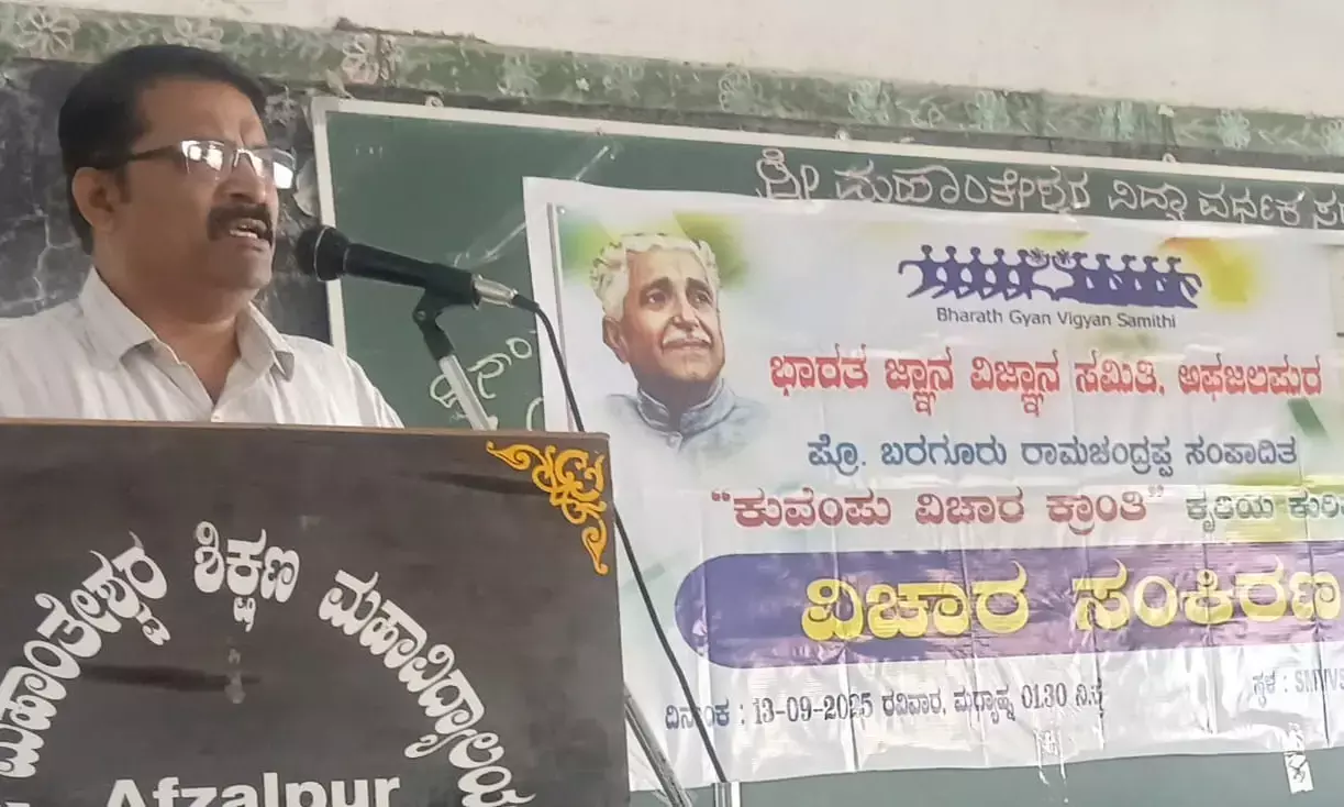 ಕಲಬುರಗಿ: ಭಾರತ ಜ್ಞಾನ ವಿಜ್ಞಾನ ಸಮಿತಿಯು ಅಫಜಲಪುರ ಪಟ್ಟಣದ ಮಹಾಂತೇಶ್ವರ ವಿದ್ಯಾವರ್ಧಕ ಸಂಘದ ಶಾಲೆಯಲ್ಲಿ ಹಿರಿಯ ಸಾಹಿತಿ ಪ್ರೊ.ಬರಗೂರು ರಾಮಚಂದ್ರಪ್ಪ ಅವರ ಸಂಪಾದಿತ "ಕುವೆಂಪು ವಿಚಾರ ಕ್ರಾಂತಿ" ಕೃತಿಯ ಕುರಿತಾಗಿ ವಿಚಾರ ಸಂಕಿರಣ ಹಮ್ಮಿಕೊಳ್ಳಲಾಯಿತು.