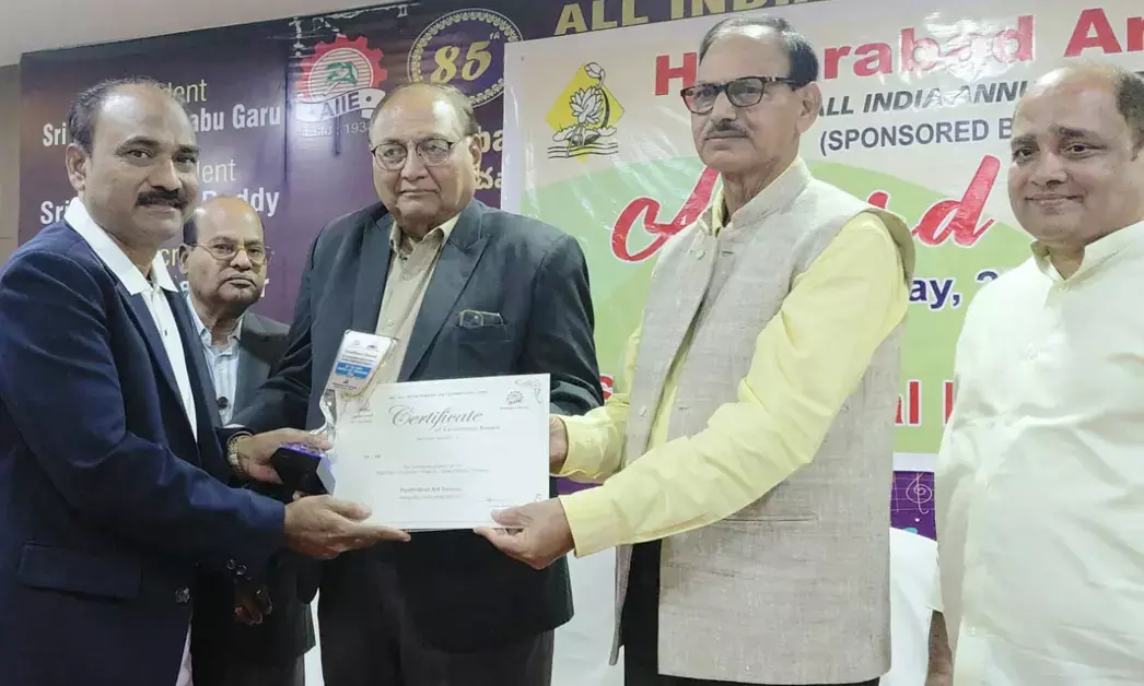 ಕಲಬುರಗಿ, ಜ.23: ಹೈದರಾಬಾದ್ ಆರ್ಟ್ ಸೊಸೈಟಿಯ 85ನೇ ವಾರ್ಷಿಕ ಅಖಿಲ ಭಾರತ ಕಲಾ ಪ್ರದರ್ಶನ-2026ರ ನಿಮಿತ್ತ ಸೊಸೈಟಿ ಕೊಡುವ ಎಕ್ಸಲೆನ್ಸ್ ಪ್ರಶಸ್ತಿಯನ್ನು ಕಲಬುರಗಿ ಕಲಾವಿದ ಮುಹಮ್ಮದ್ ಅಯಾಜುದ್ದೀನ್ ಪಟೇಲ್ ಅವರು ಸ್ವೀಕರಿಸಿದರು.