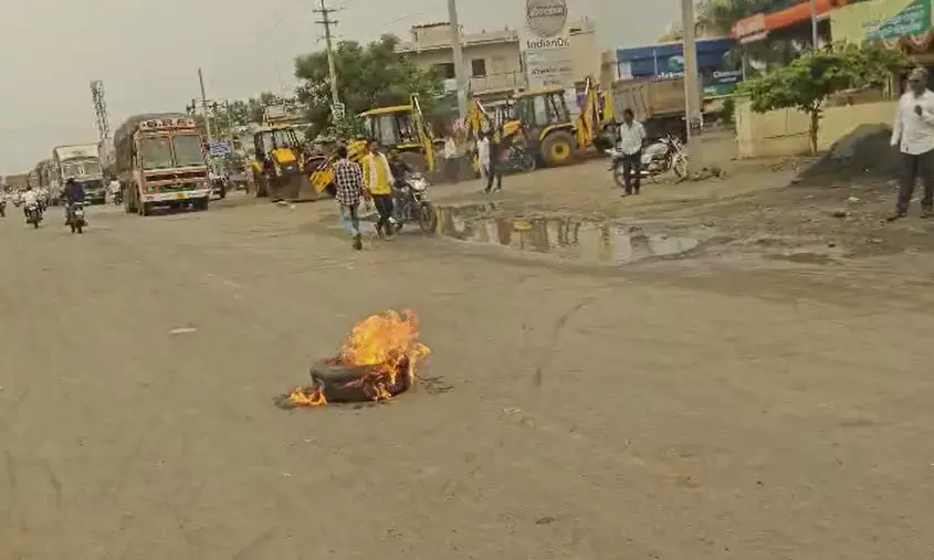 ಗುರುವಾರ ಬೆಳಗ್ಗೆ ಅಫಜಲಪುರ ಪಟ್ಟಣದ ಬಸವೇಶ್ವರ ಸರ್ಕಲ್ ನಲ್ಲಿ ಟೈರ್ಗೆ ಬೆಂಕಿ ಹಚ್ಚಿ ರೈತರು ಆಕ್ರೋಶ ವ್ಯಕ್ತಪಡಿಸಿದರು.