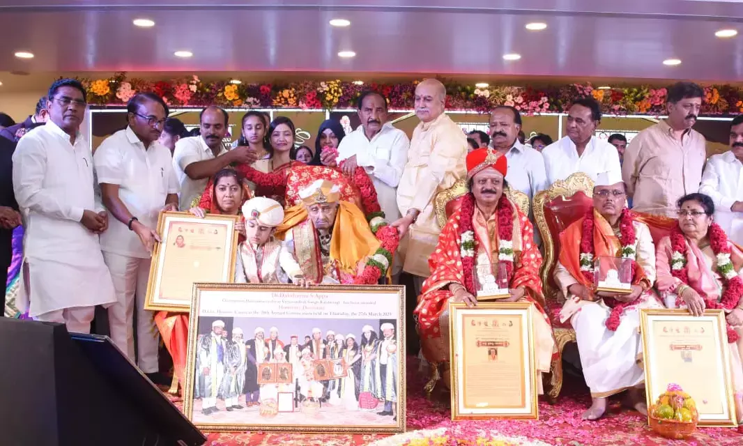 ಕಲಬುರಗಿ : ಶರಣಬಸವೇಶ್ವರ ಸಂಸ್ಥಾನದ 8ನೇ ಪೀಠಾಧಿಪತಿಗಳಾದ ಡಾ.ಶರಣಬಸವಪ್ಪ ಅಪ್ಪಾ ಅವರ ಸಾನಿಧ್ಯದಲ್ಲಿ ದೇವಸ್ಥಾನದ ಆವರಣದಲ್ಲಿನ ಅನುಭವ ಮಂಟಪ್ಪದಲ್ಲಿ ಶರಣಬಸವೇಶ್ವರ ಸಂಸ್ಥಾನದ 7ನೇ ಪೀಠಾಧಿಪತಿ ಪೂಜ್ಯ ದೊಡ್ಡಪ್ಪ ಅಪ್ಪ ಅವರ 41ನೇ ಪುಣ್ಯಸ್ಮರಣೆಯ ಪ್ರತಿಷ್ಠಿತ ಅಪ್ಪ ಪ್ರಶಸ್ತಿಯನ್ನು ನಾಲವಾರದ ಶ್ರೀ ಸಿದ್ದ ತೋಟೆಂದ್ರ ಶಿವಾಚಾರ್ಯ ಸ್ವಾಮಿಜೀಗೆ ಹಾಗೂ 203ನೇ ಶರಣಬಸವೇಶ್ವರ ಯಾತ್ರೆ ಮಹೋತ್ಸವದ ಅಂಗವಾಗಿ ಆಳಂದ ಶಾಸಕ ಬಿ.ಆರ್.ಪಾಟೀಲ್ ಅವರಿಗೆ ದಾಸೋಹ ಜ್ಞಾನ ರತ್ನ ಪ್ರಶಸ್ತಿ ಪ್ರದಾನ ಹಾಗೂ 51 ಸಾವಿರ ರೂ. ನಗದು ಪುರಸ್ಕಾರ ನೀಡಿ ಗೌರವಿಸಲಾಯಿತು.