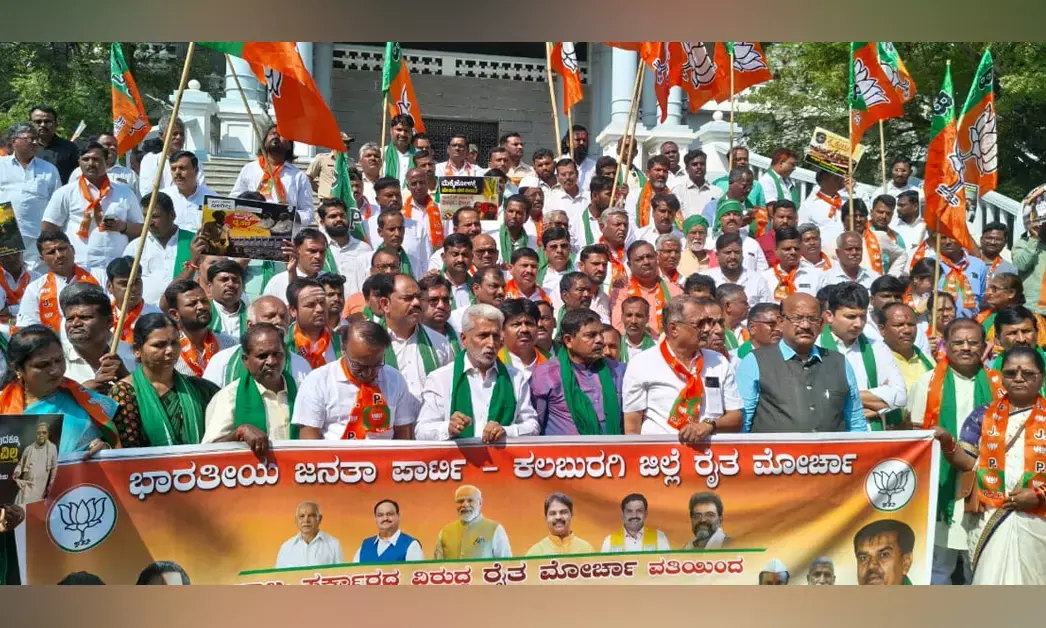 ಕಲಬುರಗಿ | ರೈತರ ವಿವಿಧ ಬೇಡಿಕೆಗಳ ಈಡೇರಿಕೆಗೆ ಆಗ್ರಹಿಸಿ ಬಿಜೆಪಿಯಿಂದ ಪ್ರತಿಭಟನೆ