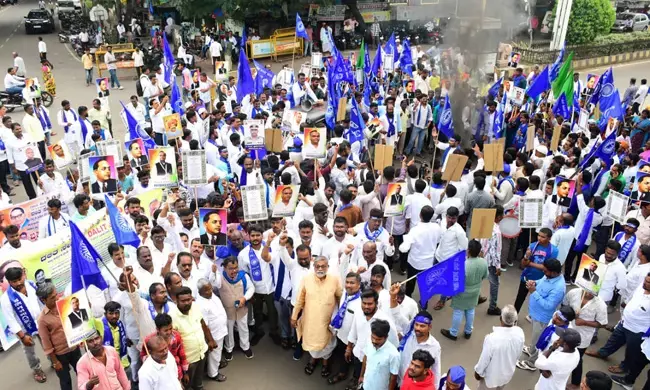 ಇಲ್ಲಿನ ಜಗತ್ ವೃತ್ತದ ಡಾ.ಬಿ.ಆರ್.ಅಂಬೇಡ್ಕರ್ ಅವರ ಮೂರ್ತಿಯಿಂದ ಪ್ರಾರಂಭವಾದ ಪ್ರತಿಭಟನಾ ಮೆರವಣಿಗೆ ಅನ್ನಪೂರ್ಣ ಕ್ರಾಸ್ ನಿಂದ ಸರ್ದಾರ್ ವಲ್ಲಭಭಾಯಿ ಪಟೇಲ್ ವೃತ್ತದ ಮೂಲಕ ಹಾದು ಜಿಲ್ಲಾಧಿಕಾರಿಗಳ ಕಚೇರಿಗೆ ತಲುಪಿತು.