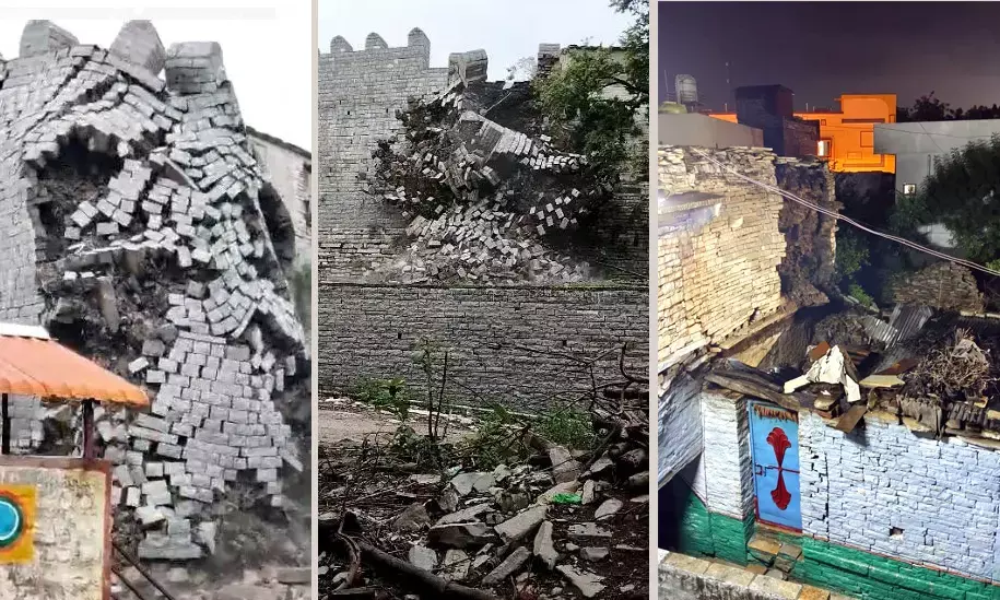 ಕಲಬುರಗಿ: ಧಾರಾಕಾರ ಮಳೆಗೆ ಮಳಖೇಡ ಕೋಟೆಯ ಗೋಡೆ ಕುಸಿತ