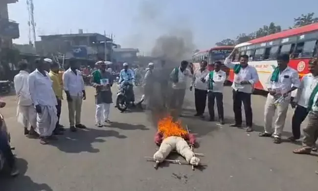 ಕಲಬುರಗಿ | ಕೇಂದ್ರ ಸರಕಾರದ ನಡೆ ಖಂಡಿಸಿ ಪ್ರಧಾನಿ ಮೋದಿ ಪ್ರತಿಕೃತಿ ದಹಿಸಿ ಪ್ರತಿಭಟನೆ