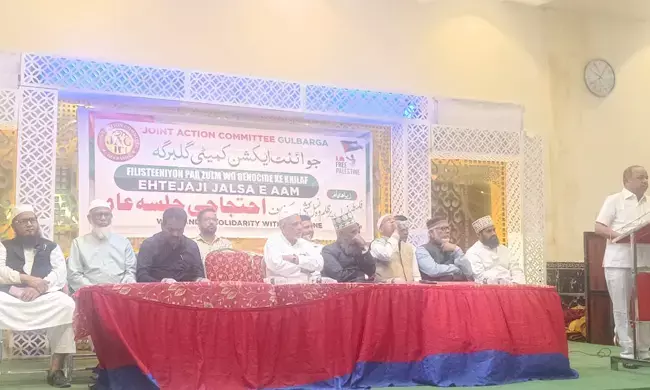 ಕಲಬುರಗಿ: ನಗರದ ಶಾಲಿಮಾರ್ ಪಂಕ್ಷನ್ ಹಾಲ್ ನಲ್ಲಿ ಜಿಲ್ಲಾ ಜಾಂಟ್ ಅಕ್ಷನ್ ಕಮಿಟಿ ವತಿಯಿಂದ ಶನಿವಾರ ಫೆಲೆಸ್ತೀನಿಯರ ಮೇಲಿನ ನರಮೇಧ ಖಂಡಿಸಿ ಪ್ರತಿಭಟನಾ ಸಮಾವೇಶ ಜರುಗಿತು.