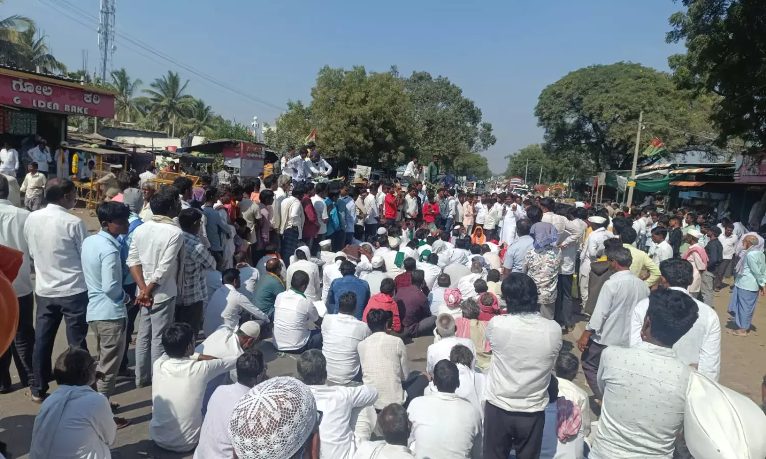 ಕಲಬುರಗಿ: ಮಲ್ಲಾಬಾದ ಏತ ನೀರಾವರಿ ಕಾಮಗಾರಿ ಕೂಡಲೇ ಕೆಲಸ ಪ್ರಾರಂಭಿಸಬೇಕೆಂದು ಒತ್ತಾಯಿಸಿ ರೈತಪರ ಮತ್ತು ಕನ್ನಡ ಪರ ಸಂಘಟನೆಗಳ ನೇತೃತ್ವದಲ್ಲಿ ರೈತರು ಕಲಬುರಗಿ- ರಾಯಚೂರು ರಾಷ್ಟ್ರೀಯ ಹೆದ್ದಾರಿ ತಡೆದು ಧರಣಿ ನಡೆಸಿದರು.