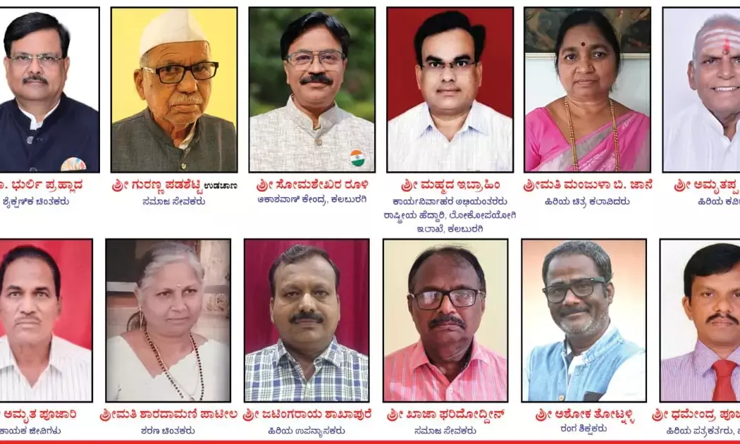ಪ್ರಮುಖರಾದ ತೊನಸನಹಳ್ಳಿ ಅಲ್ಲಮಪ್ರಭು ಪೀಠದ ಶ್ರೀ ಡಾ. ಮಲ್ಲಣ್ಣಪ್ಪ ಮಹಾಸ್ವಾಮಿಗಳು, ಶೈಕ್ಷಣಿಕ ಚಿಂತಕ ಡಾ. ಭುರ್ಲಿ ಪ್ರಹ್ಲಾದ, ಸಮಾಜ ಸೇವಕರಾದ ಗುರಣ್ಣ ಪಡಶೆಟ್ಟಿ ಉಡಚಣ, ಹಣಮಂತರಾಯ ಕಣ್ಣಿ, ಆಕಾಶವಾಣಿ ಕೇಂದ್ರದ ಸೋಮಶೇಖರ ರೂಳಿ, ಕಾರ್ಯನಿರ್ವಾಹಕ ಅಭಿಯಂತರಾದ ಮುಹಮ್ಮದ್ ಇಬ್ರಾಹಿಂ, ಹಿರಿಯ ಚಿತ್ರಕಲಾವಿದೆ ಮಂಜುಳಾ ಬಸವರಾಜ ಜಾನೆ, ಹಿರಿಯ ಕವಿ ಅಮೃತಪ್ಪ ಅಣೂರ, ಬನ್ನಪ್ಪ ಬಿ.ಕೆ. ಸೇಡಂ, ಶಾರದಾಮಣಿ ಪಾಟೀಲ, ರಂಗ ಶಿಕ್ಷಕ ಅಶೋಕ ತೊಟ್ನಳ್ಳಿ, ಅಮೃತ ಪೂಜಾರಿ, ಜಟಿಂಗರಾಯ ಶಾಖಾಪುರೆ, ಖಾಜಾ ಫರಿದೋದ್ದೀನ್, ಪತ್ರಕರ್ತ ಧರ್ಮೇಂದ್ರ ಪೂಜಾರಿ, ಉದ್ಯಮಿ ಮಹೇಶ ಚಿಂಚೋಳಿ ಅವರನ್ನು ಆಯ್ಕೆ ಮಾಡಲಾಗಿದೆ ಎಂದು ತಿಳಿಸಿದರು.