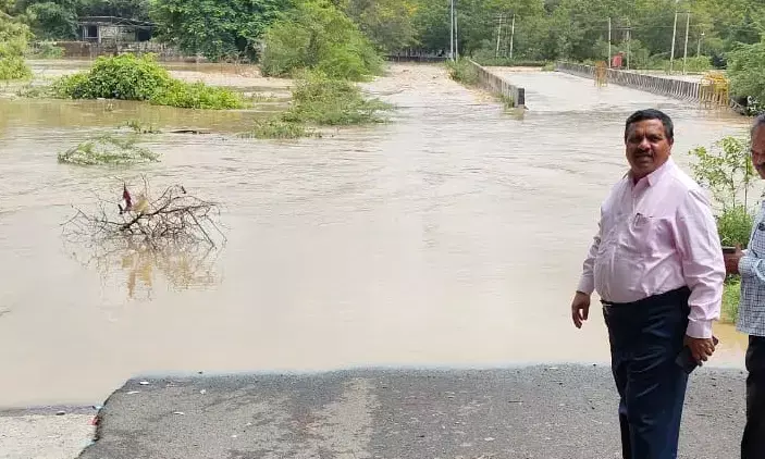 ಕಲಬುರಗಿ | ಶಹಾಬಾದ್ನ ಅಜನಿ ಹಳ್ಳದ ಸೇತುವೆ ಮುಳುಗಡೆ: ಸಂಚಾರಕ್ಕೆ ಅಡ್ಡಿ