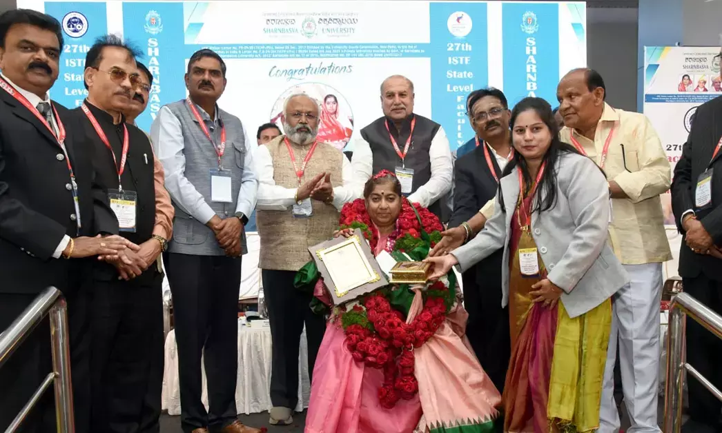 ಕಲಬುರಗಿ: ಕಲಬುರಗಿ ನಗರದ ಶರಣಬಸವ ವಿಶ್ವವಿದ್ಯಾಲಯದ ಮುಖ್ಯ ಆವರಣದಲ್ಲಿರುವ ದೊಡ್ಡಪ್ಪ ಅಪ್ಪ ಸಭಾಂಗಣದಲ್ಲಿ ಶನಿವಾರ ನಡೆದ 27ನೇ ಐಎಸ್ಟಿಇ ರಾಜ್ಯ ಮಟ್ಟದ ಪ್ರಾಧ್ಯಾಪಕರ ಸಮಾವೇಶದಲ್ಲಿ, ಶರಣಬಸವೇಶ್ವರ ವಿದ್ಯಾವರ್ಧಕ ಸಂಘಕ್ಕೆ ನೀಡಲಾಗುವ ಪ್ರತಿಷ್ಠಿತ ಐಎಸ್ಟಿಇ “ಬೆಸ್ಟ್ ಎಜುಕೇಶನ್ ಸೊಸೈಟಿ” ಪ್ರಶಸ್ತಿಯನ್ನು ಸಂಘದ ಅಧ್ಯಕ್ಷರಾದ ಮಾತೋಶ್ರೀ ಡಾ.ದಾಕ್ಷಾಯಿಣಿ ಅವ್ವಾಜಿ ಅವರಿಗೆ ಇಂಡಿಯನ್ ಸೊಸೈಟಿ ಫಾರ್ ಟೆಕ್ನಿಕಲ್ ಎಜುಕೇಶನ್ನ ರಾಷ್ಟ್ರೀಯ ಅಧ್ಯಕ್ಷರು ಮತ್ತು ಇತರ ಪದಾಧಿಕಾರಿಗಳು ಪ್ರದಾನ ಮಾಡಿದರು.