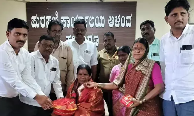 ಆಳಂದ ಪಟ್ಟಣದ ಪುರಸಭೆ ಸಭಾಂಗಣದಲ್ಲಿ ಸ್ಥಳೀಯ ಪೌರನೌಕರ ಸಂಘವು ಶುಕ್ರವಾರ ಪುರಸಭೆಯ ಪೌರ ಕಾರ್ಮಿಕರ ಮೇಲ್ವಿಚಾರಕಿ ಜಗದೇವಿ ಕೆ.ಕಡಗಂಚಿ ಅವರ ನಿವೃತ್ತಿ ಪ್ರಯುಕ್ತ ಹಮ್ಮಿಕೊಂಡ ಬೀಳ್ಕೊಡುಗೆ ಸಮಾರಂಭದಲ್ಲಿ ಜಗದೇವಿ ಅವರನ್ನು ಸನ್ಮಾನಿಸಿ ಮಾತನಾಡಿದರು.
