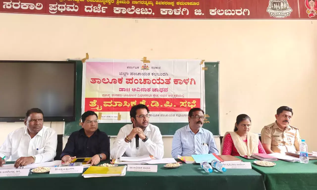 ಕಾಳಗಿ ಪಟ್ಟಣದ ಸರಕಾರಿ ಪ್ರಥಮ ದರ್ಜೆ ಕಾಲೇಜಿನಲ್ಲಿ ಶುಕ್ರವಾರ ಹಮ್ಮಿಕೊಂಡ ಪ್ರಗತಿ ಪರಿಶೀಲನಾ ಸಭೆಯಲ್ಲಿ ಅಧ್ಯಕ್ಷತೆ ವಹಿಸಿ ಮಾತನಾಡಿದ ಡಾ. ಅವಿನಾಶ್ ಜಾದವ್, ಗ್ರಾಮ ಪಂಚಾಯಿತಿ ವಸತಿ ಯೋಜನೆಗಳ ಪರಿಶೀಲನೆ ನಡೆಸಿ ಕಾಲಹರಣ ಮಾಡಬೇಡಿ. ಸಾರ್ವಜನಿಕರಿಗೆ ತೊಂದರೆ ಕೊಡದೆ ನ್ಯಾಯಯುತವಾಗಿ ಕೆಲಸ ಮಾಡುವಂತೆ ನಿರ್ದೇಶನ ನೀಡಿದರು.