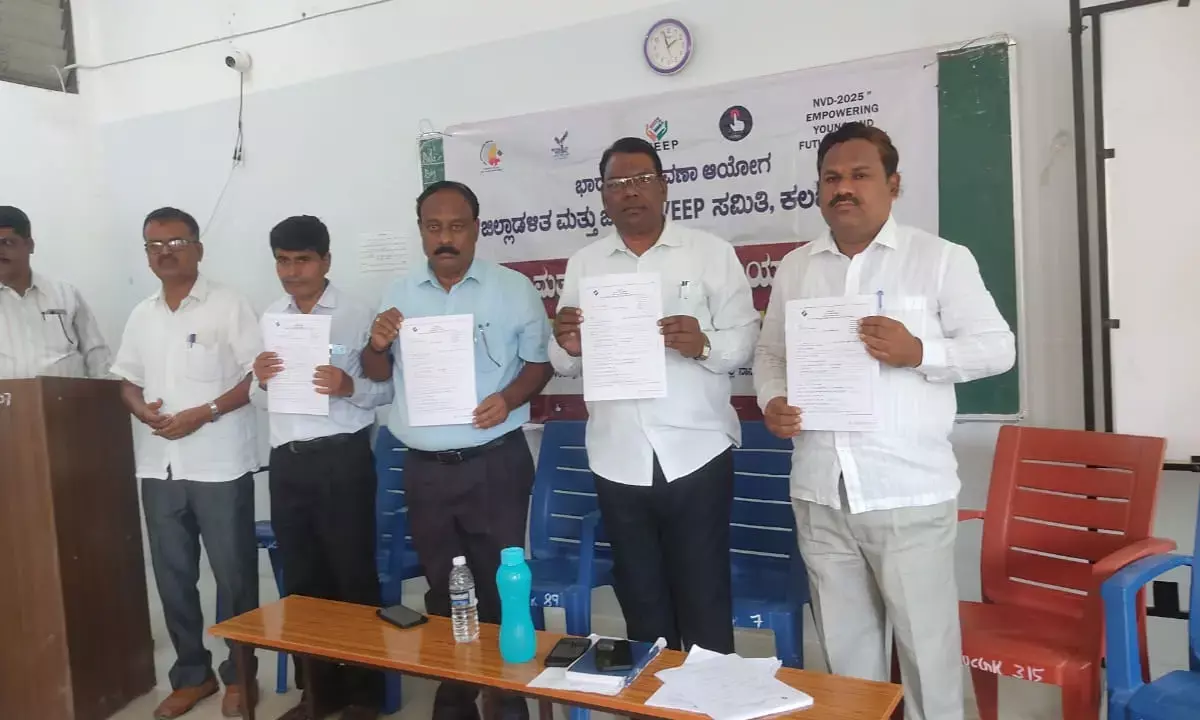 ಕಲಬುರಗಿ: ನಗರದ ಬಾಲಕಿಯರ ಸರ್ಕಾರಿ ಪದವಿ ಪೂರ್ವ ಕಾಲೇಜಿನಲ್ಲಿ ನಡೆದ ಭಾರತದ ಚುನಾವಣಾ ಆಯೋಗ ಮತ್ತು ಜಿಲ್ಲಾ ಆಡಳಿತದಿಂದ ಚುನಾವಣೆ ಜಾಗೃತ ಕಾರ್ಯಕ್ರಮವನ್ನು ಪದವಿ ಪೂರ್ವ ಶಿಕ್ಷಣ ಇಲಾಖೆಯ ಉಪನಿರ್ದೇಶ ಸುರೇಶ ಅಕ್ಕಣ್ಣ ಅವರು ಉದ್ಘಾಟಿಸಿದರು.