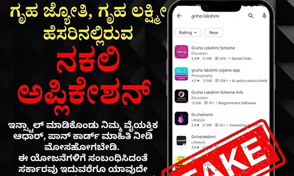 ಸಾರ್ವಜನಿಕರು ಇಂತಹ ನಕಲಿ ಅಪ್ಲಿಕೇಷನ್ ಗಳ ಮೂಲಕ ತಮ್ಮ ವೈಯಕ್ತಿಕ ಆಧಾರ್, ಪ್ಯಾನ್ ಕಾರ್ಡ್ ಮಾಹಿತಿ ನೀಡಿ ಮೋಸ ಹೋಗಬಾರದು. ಈ ಯೋಜನೆಗಳಿಗೆ ಸಂಬಂಧಿಸಿದಂತೆ ಸರಕಾರವು ಇದುವರೆಗೂ ಯಾವುದೇ ಅಂಡ್ರಾಯ್ಡ್ ಅಪ್ಲಿಕೇಷನ್ ಅನ್ನು ಬಿಡುಗಡೆ ಮಾಡಿರುವುದಿಲ್ಲ. ಈ ಯೋಜನೆ ಗಳ ನೋಂದಣಿಗಾಗಿ ಸೇವಾ ಸಿಂಧು ಪೋರ್ಟಲ್ಗೆ ಭೇಟಿ ನೀಡಬೇಕು ಎಂದು ಅವರು ಪ್ರಕಟಣೆಯಲ್ಲಿ ತಿಳಿಸಿದ್ದಾರೆ.