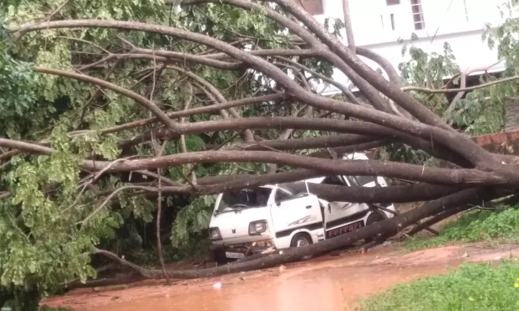 ಕೊಡಾಜೆ ನಿವಾಸಿ ಇಸ್ಮಾಯಿಲ್ ಎಂಬವರಿಗೆ ಸೇರಿದ ಓಮ್ನಿ ಕಾರನ್ನು ತನ್ನ ಮನೆಯ ಸಮೀಪ ನಿಲ್ಲಿಸಿದ್ದರು. ಮಳೆ ಗಾಳಿಗೆ ಬೃಹತಾಕಾರದ ಮಾವಿನ ಮರ ಅದರ ಮೇಲೆ ಉರುಳಿ ಬಿದ್ದಿದೆ. ಇದರಿಂದ ಕಾರು ಸಂಪೂರ್ಣವಾಗಿ ಜಖಂಗೊಂಡಿದೆ ಎಂದು ತಿಳಿದು ಬಂದಿದೆ.