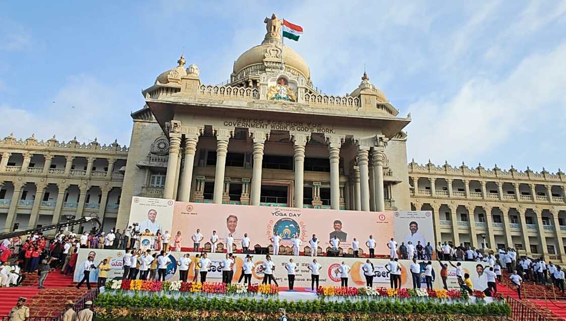 ಶುಕ್ರವಾರ ವಿಧಾನಸೌಧದ ಮುಂಭಾಗದಲ್ಲಿ ಆಯುಷ್ ಇಲಾಖೆ ಮತ್ತು ಆರೋಗ್ಯ ಮತ್ತು ಕುಟುಂಬ ಕಲ್ಯಾಣ ಇಲಾಖೆ ವತಿಯಿಂದ ಆಯೋಜಿಸಲಾಗಿದ್ದ 10ನೆ ಅಂತಾರಾಷ್ಟ್ರೀಯ ಯೋಗ ದಿನಾಚರಣೆ ಕಾರ್ಯಕ್ರಮವನ್ನು ರಾಜ್ಯಪಾಲ ಥಾವರ್ ಚಂದ್ ಗೆಹ್ಲೋಟ್ ಯೋಗಾಭ್ಯಾಸ ಮಾಡುವ ಮೂಲಕ ಉದ್ಘಾಟಿಸಿದರು.