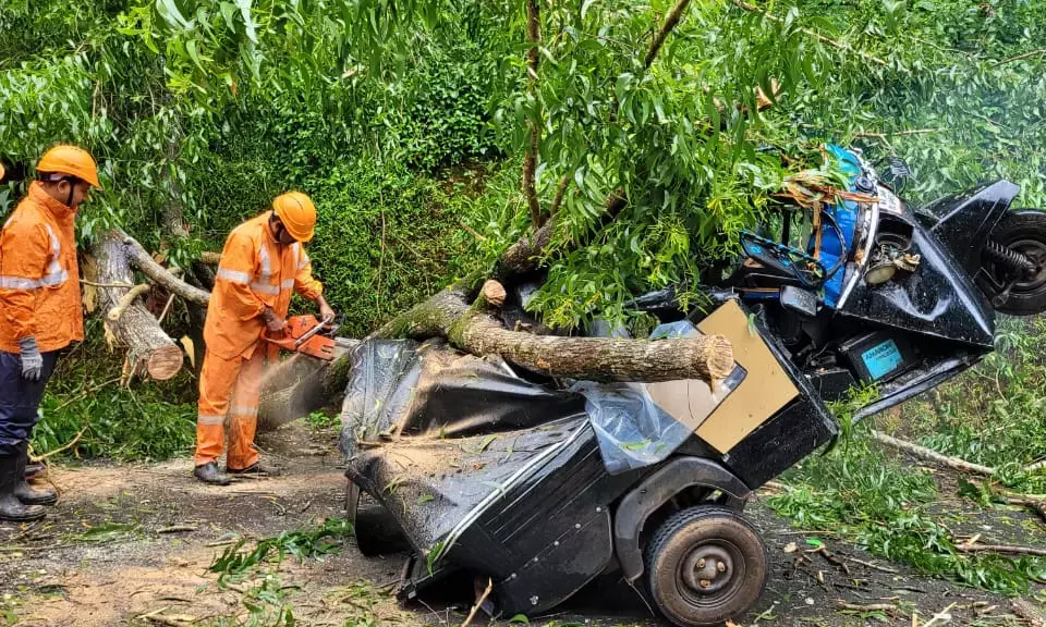ಕಾಸರಗೋಡು | ಚಲಿಸುತ್ತಿದ್ದ ಆಟೊ ರಿಕ್ಷಾದ ಮೇಲೆ ಬಿದ್ದ ಭಾರೀ ಗಾತ್ರದ ಮರ