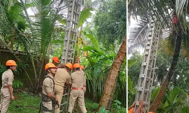 ಕಾಸರಗೋಡು| ತೆಂಗಿನ ಮರಕ್ಕೆ ಹತ್ತಿ, ಯಂತ್ರ ದೋಷದಿಂದ ಮರದಲ್ಲಿ ಸಿಲುಕಿದ ವ್ಯಕ್ತಿ