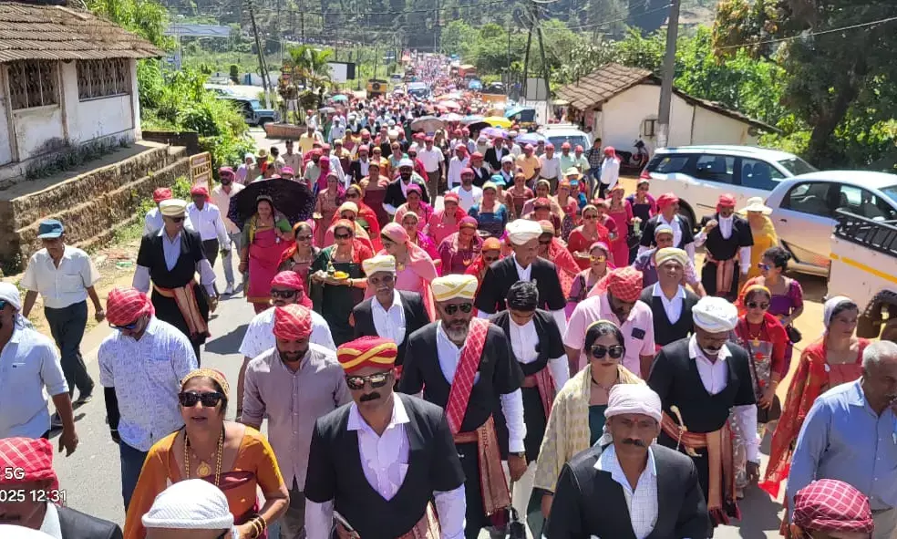 ಅಖಿಲ ಕೊಡವ ಸಮಾಜದ ನೇತೃತ್ವದಲ್ಲಿ ನಡೆಯುತ್ತಿರುವ ಪಾದಯಾತ್ರೆ ಇಂದು ಬೆಳಗ್ಗೆ ಬಿಟ್ಟಂಗಾಲದ ಹೆಗ್ಗಡೆ ಸಮಾಜದಿಂದ ಆರಂಭಗೊಂಡಿತು. ಸಹಸ್ರಾರು ಸಂಖ್ಯೆಯ ಸಮುದಾಯ ಬಾಂಧವರು ಸಾಂಪ್ರದಾಯಿಕ ಉಡುಪಿನೊಂದಿಗೆ ಅತ್ಯಂತ ಶಿಸ್ತುಬದ್ಧವಾಗಿ ಜಾಥದಲ್ಲಿ ಪಾಲ್ಗೊಳ್ಳುವ ಮೂಲಕ ಗಮನ ಸೆಳೆದರು.