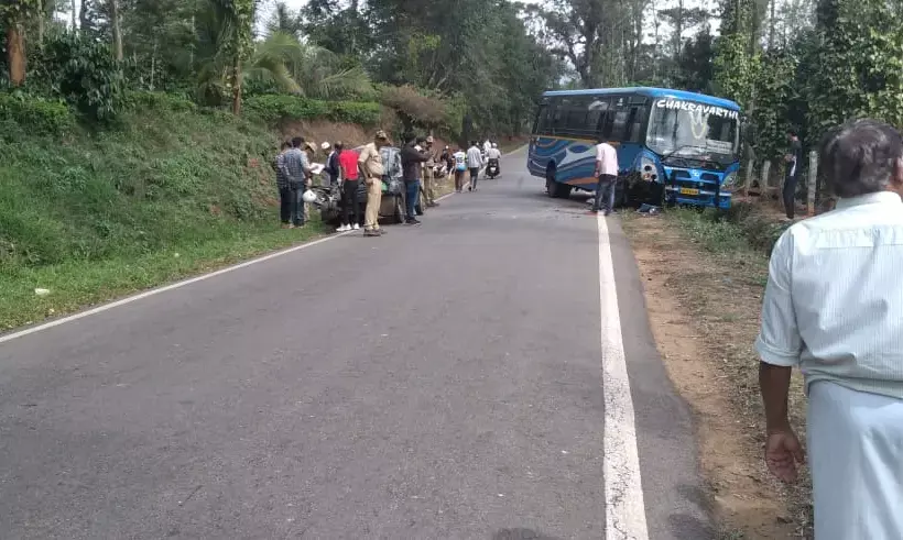 ಮಡಿಕೇರಿ| ಬಸ್, ಕಾರು ಢಿಕ್ಕಿ : ಚಾಲಕನಿಗೆ ಗಂಭೀರ ಗಾಯ