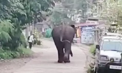 ಮಡಿಕೇರಿ : ಹಾಡಹಗಲೇ ನಿರಾತಂಕವಾಗಿ ಕಾಡಾನೆಯೊಂದು ವಸತಿ ಪ್ರದೇಶದ ಮುಖ್ಯ ರಸ್ತೆಯಲ್ಲಿ ಸಂಚರಿಸಿ ಸಾರ್ವಜನಿಕರನ್ನು ಆತಂಕಕ್ಕೆ ದೂಡಿದ ಘಟನೆ ಸುಂಟಿಕೊಪ್ಪ ಬಳಿಯ ಕಂಬಿಬಾಣೆಯಲ್ಲಿ ನಡೆದಿದೆ.