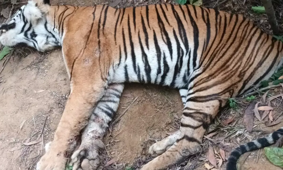 ಮಡಿಕೇರಿ: ಕಾಫಿ ತೋಟದಲ್ಲಿ ಹುಲಿಯ ಮೃತದೇಹ ಪತ್ತೆ