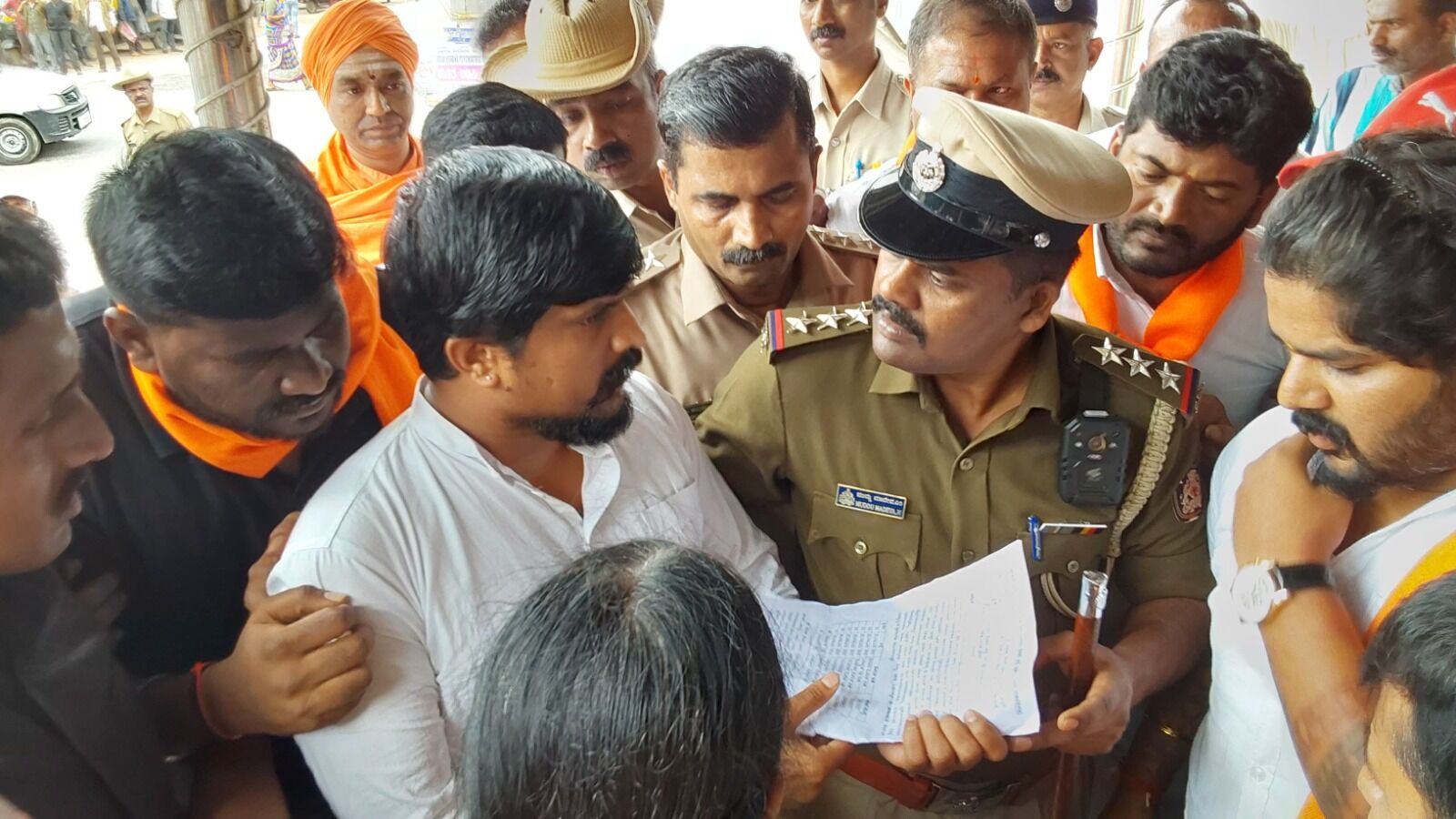 ಪ್ರತಿಭಟನಾ ಸ್ಥಳದ ವೇದಿಕೆ ಏರುತ್ತಿದ್ದಂತೆ ಎಎಸ್ಪಿ ದಿನೇಶ್ ಕುಮಾರ್ ಹಾಗೂ ಕುಶಾಲನಗರ ಡಿವೈಎಸ್ಪಿ ಚಂದ್ರಶೇಖರ್ ಮತ್ತಿತರ ಅಧಿಕಾರಿಗಳು ಜಿಲ್ಲಾಧಿಕಾರಿಯ ನಿರ್ಬಂಧ ಆದೇಶವನ್ನು ನೀಡಿ ತಕ್ಷಣ ವೇದಿಕೆಯಿಂದ ಹೊರ ಹೋಗುವಂತೆ ಸೂಚನೆ ನೀಡಿದರು. ಈ ಸಂದರ್ಭ ಪೊಲೀಸರು ಹಾಗೂ ಧರಣಿನಿರತರ ನಡುವೆ ಮಾತಿನ ಚಕಮಕಿ ನಡೆಯಿತು. ಈ ಸಂದರ್ಭ ಕೆಲಕಾಲ ರಸ್ತೆ ಸಂಚಾರ ಅಸ್ತವ್ಯಸ್ತ ಉಂಟಾಯಿತು.