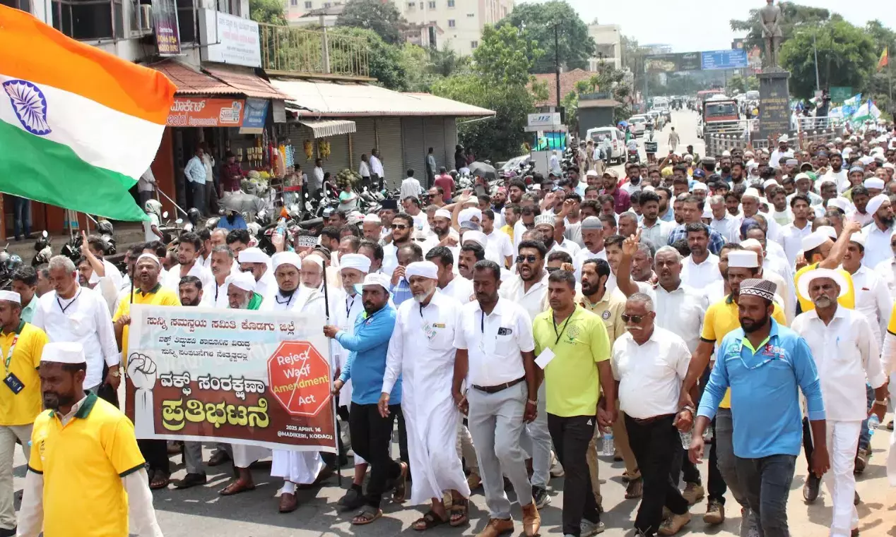 ಕೊಡಗು ಜಿಲ್ಲಾ ಖಾಝಿ ಅಬ್ದುಲ್ಲಾ ಫೈಝಿ ಹಾಗೂ ಜಿಲ್ಲಾ ಜಮಾಯತ್ ಉಲಮಾ ಅಧ್ಯಕ್ಷ ಸೈಯ್ಯದ್ ಶಿಹಾಬುದ್ದೀನ್ ಹೈದ್ರೋಸಿ ಅವರ ನೇತೃತ್ವದಲ್ಲಿ, ಜಿಲ್ಲಾ ಸುನ್ನಿ ಸಮನ್ವಯ ಸಮಿತಿಯ ಮಾರ್ಗದರ್ಶನದಲ್ಲಿ ನಗರದ ಫೀಲ್ಡ್ ಮಾರ್ಷಲ್ ಕೆ.ಎಂ.ಕಾರ್ಯಪ್ಪ ವೃತ್ತದಿಂದ ಗಾಂಧಿ ಮೈದಾನದವರೆಗೆ ಪ್ರತಿಭಟನಾ ಮೆರವಣಿಗೆ ನಡೆಯಿತು. ವಕ್ಫ್ ತಿದ್ದುಪಡಿ ಮಸೂದೆಗೆ ಪ್ರತಿಭಟನಾಕಾರರು ತೀವ್ರ ವಿರೋಧ ವ್ಯಕ್ತಪಡಿಸಿದರು.