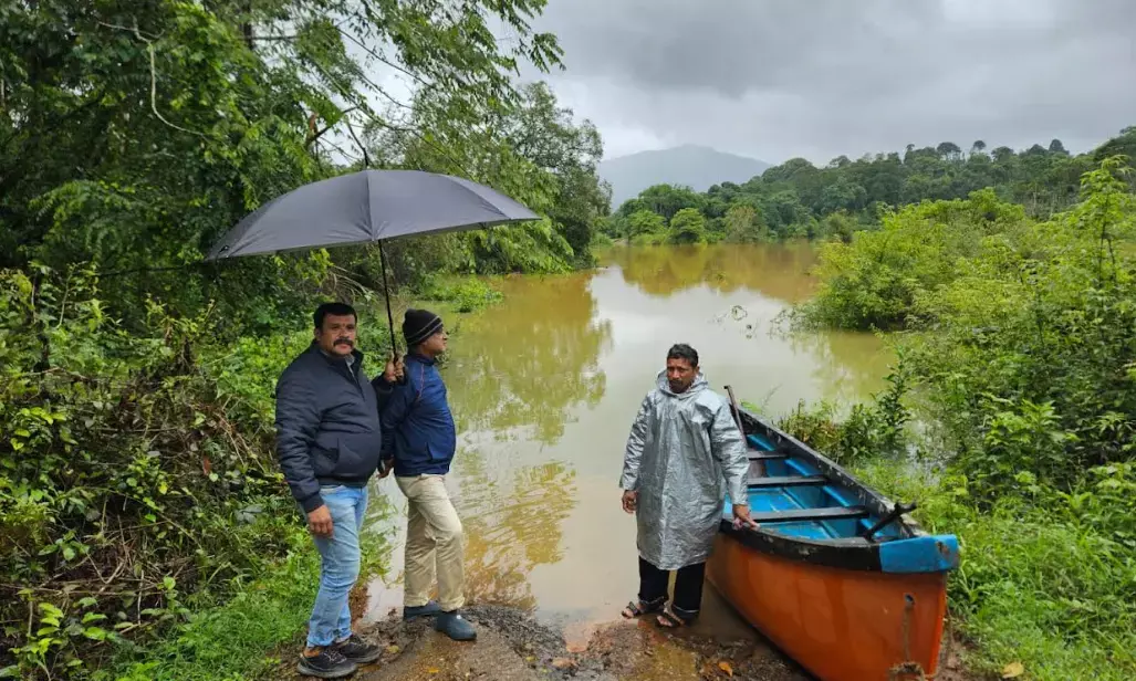ನಿರಂತರ ಮಳೆಯಿಂದಾಗಿ ಚೇರಂಬಾಣೆ ಗ್ರಾಮ ಪಂಚಾಯತಿ ವ್ಯಾಪ್ತಿಯ ಬೇಂಗೂರು ಗ್ರಾಮದ ದೋಣಿ ಕಾಡು ರಸ್ತೆ ಜಲಾವೃತಗೊಂಡಿದೆ. ಸ್ಥಳಕ್ಕೆ ಮಡಿಕೇರಿ ತಾಲ್ಲೂಕು ತಹಶೀಲ್ದಾರರು ಭೇಟಿ ನೀಡಿ ಪರಿಶೀಲಿಸಿದರು. ಸಾರ್ವಜನಿಕರ ಅನುಕೂಲಕ್ಕಾಗಿ ದೋಣಿ ವ್ಯವಸ್ಥೆ ಕಲ್ಪಿಸಲಾಗಿದೆ. ಭಾಗಮಂಡಲ ಹೋಬಳಿ ಕಂದಾಯ ಪರಿವೀಕ್ಷಕರು ಹಾಗೂ ಗ್ರಾಮ ಆಡಳಿತ ಅಧಿಕಾರಿಗಳು ಹಾಜರಿದ್ದರು.