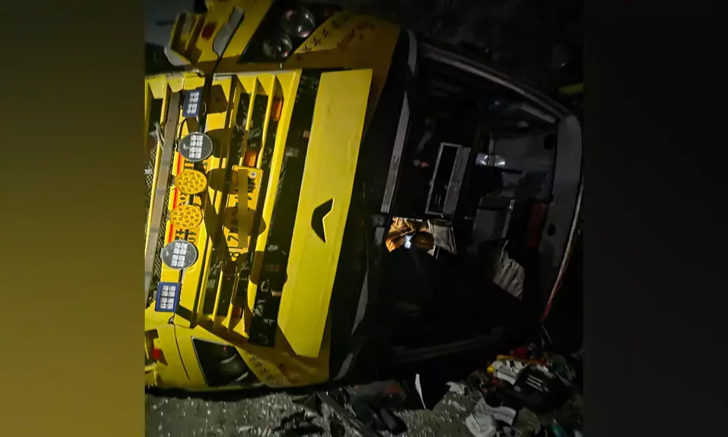 ಪೊಲೀಸರ ಪ್ರಕಾರ, ಬಸ್ ಚಾಲಕನ ನಿಯಂತ್ರಣ ತಪ್ಪಿ ರಸ್ತೆ ಮಧ್ಯದ ಡಿವೈಡರ್ಗೆ ಢಿಕ್ಕಿ ಹೊಡೆದಿದ್ದು, ಪರಿಣಾಮ ಬಸ್ ಪಲ್ಟಿಯಾಗಿದೆ. ಅಪಘಾತದ ತೀವ್ರತೆಯಿಂದ ಬಸ್ನೊಳಗಿದ್ದ ಪ್ರಯಾಣಿಕರು ಗಂಭೀರವಾಗಿ ಗಾಯಗೊಂಡಿದ್ದಾರೆ.