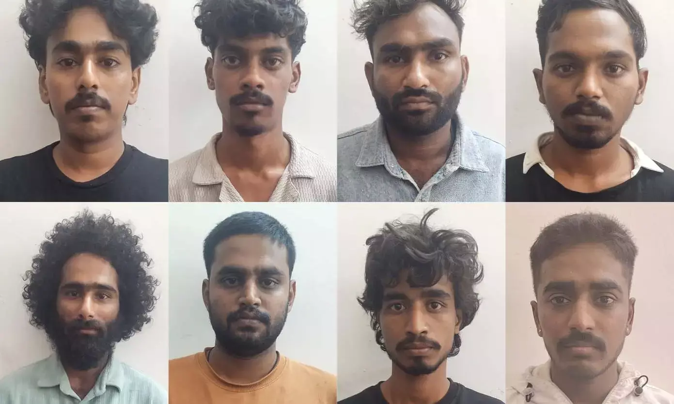ಬಂಧಿತ ಆರೋಪಿಗಳನ್ನು ಸೌಜೇಶ ಕೆ.ಕೆ.(28), ಸಲಿಂ ಪಿ.ಪಿ.(27) , ಬಿ.ದುರ್ಗಾ ಪ್ರಸಾದ್(27), ಬಾದ್ ಷಾ(32), ಮದನ್(26), ಸೂರ್ಯ ಪ್ರತಾಪ್ ರೆಡ್ಡಿ(19), ಮುಹಮ್ಮದ್ ಹಮೀದ್(22), ಮಣಿಕಂಠ(23) ಎಂದು ಗುರುತಿಸಲಾಗಿದೆ.