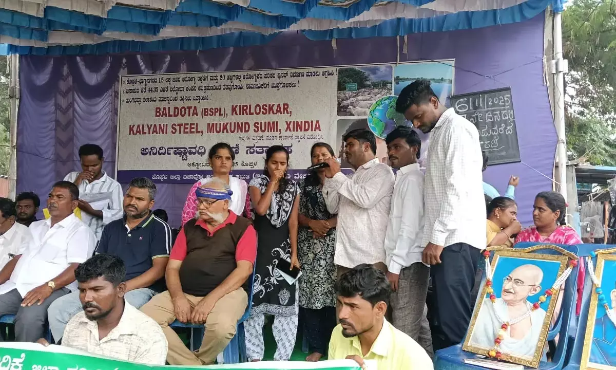 ಕೊಪ್ಪಳ : ಜಿಲ್ಲಾ ಬಚಾವೋ ಆಂದೋಲನ ಸಮಿತಿ ಹಾಗೂ ಪರಿಸರ ಹಿತರಕ್ಷಣಾ ವೇದಿಕೆ ಇದರ ಜಂಟಿ ಕ್ರಿಯಾ ವೇದಿಕೆ ಆರಂಭಿಸಿರುವ ಕಾರ್ಖಾನೆ ವಿರೋಧಿ ಅನಿರ್ದಿಷ್ಟಾವಧಿ ಧರಣಿಯ 7ನೇ ದಿನ ಕರ್ನಾಟಕ ಮಾದಿಗ ರಕ್ಷಣಾ ವೇದಿಕೆ (ಕೆ.ಎಂ.ಆರ್.ವಿ), ಕರ್ನಾಟಕ ಜನಶಕ್ತಿ ಹಾಗೂ ಧರಣಿ ಕಲಾ ಬಳಗದ ಬೆಂಬಲದಿಂದ ನೆರವೇರಿತು.