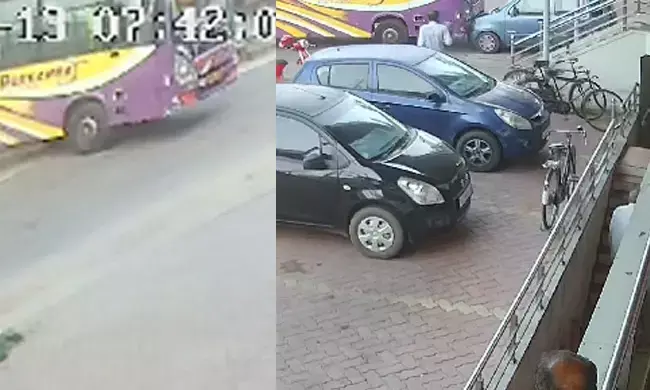 ಕುಂದಾಪುರ: ಡ್ರೈವರ್ ಇಲ್ಲದೆ ಚಲಿಸಿದ ಖಾಸಗಿ ಬಸ್; ನಿಂತಿದ್ದ ಕಾರಿಗೆ ಢಿಕ್ಕಿ